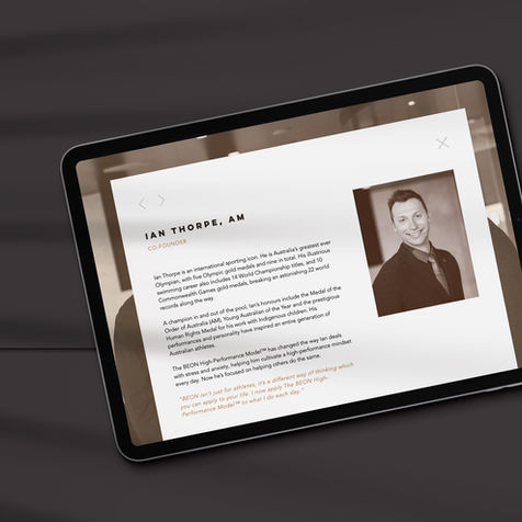 BEON was founded by international cricketing superstar, Shane Watson, Australia’s greatest Olympian, Ian Thorpe, and world-renowned performance leader, Dr Jacques Dallaire. Each founder has their own real-life experiences to give context to the science and methodology that makes up The BEON High-Performance Model™. We were lucky enough to work with Shane and Lee, to create the BEON Performance website and brand collateral. We also developed an initial social media strategy and launch plan.